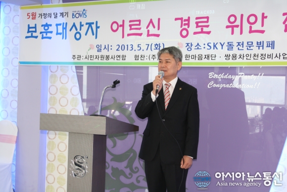 | 지난 7일 윤건용 인천보훈지청장이 '보훈대상자 어르신 경로 위안잔치'를 열고 "건강하게 오래오래 사세요"라고 인사말을 전하고 있다./아시아뉴스통신=김태일 기자 |