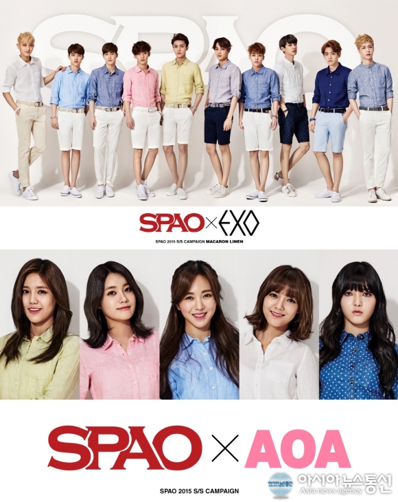이랜드그룹의 국내 최초 SPA 브랜드 스파오가 최고 대세 아이돌 엑소(EXO)와 AOA를 전속 모델로 발탁했다.