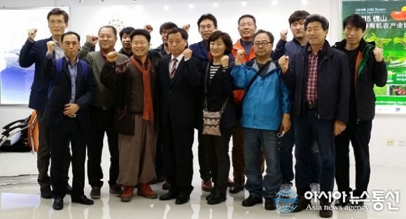 | 지난 13일 주상하이 충북사무소를 방문한 ‘충북 유기농식품 중국시장개척.조사단’이 현지 직원들과 기념촬영을 했다. 이들은 오는 17일까지 상하이와 칭다오에서 현지 시장조사와 함께 상담을 한다.(사진제공=충북도청) |