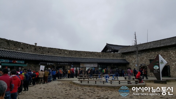 | 전라북도 무주군 설천면에 소재한 덕유산에 오르기 위해 무주리조트 방향 곤도라 탑승장에 길게 늘어선 관광객 모습./아시아뉴스통신=오종영 기자 |