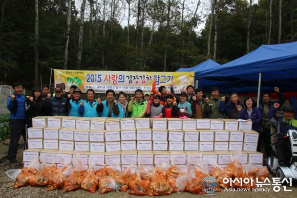 | (사)충남곰두리봉사회 천안시지회는 회원들이 함께 김장을 담가 관내 어려운 이웃에게 전달하는 '사랑의 김장김치 나눔행사'를 10년째 해오고 있다.(사진제공=천안시청) |