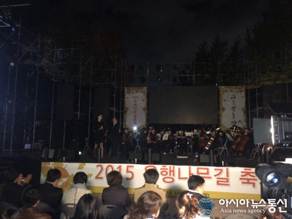 | 지난달 30일 충남 아산시 곡교천 은행나무길에서 '에코야 놀자 은행나무길' 축제 개막식에서 좌석의 반도 채우지 못한 채 진행되고 있다./아시아뉴스통신=최 솔 기자 |