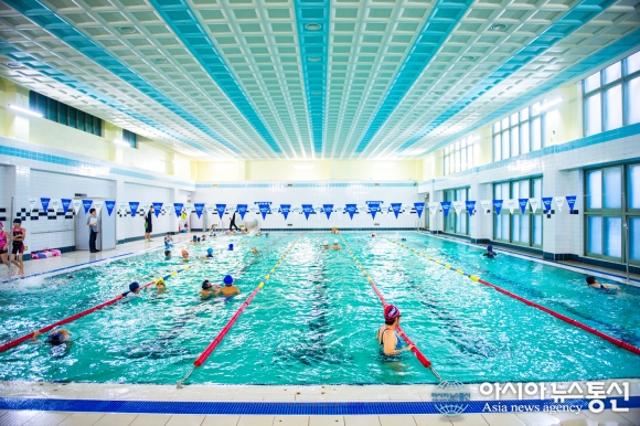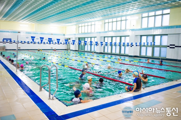 | 지난 2일부터 국내 최대 공공스포츠센터를 운영중인 주식회사 한국체육산업개발이 학교 체육시설인 서울 조원초등학교 수영장을 직접 운영하고 있다.(사진제공=한국체육산업개발) |