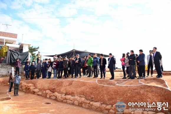 | 사진은 부여 백제 사비도성의 빙고유적 발굴현장 공개 장면.(사진제공= 부여군청) |