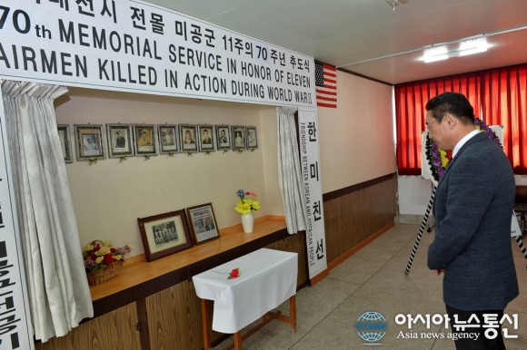 미공군 장병 11명의 영령에 대한 ‘제70주년 추도식’이 12일 오후 경남 남해군 미공군전공기념관(새남해로타리회관)에서 거행됐다.