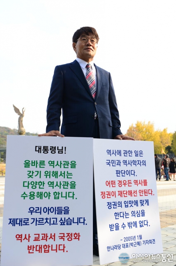 또한 “한국사 교과서 국정화는 우리 사회가 이룩해 온 민주주의의 가치인 자율성과 다양성을 전면 부정하는 행위이며, 학생들에게 하나의 역사관을 강제 주입하겠다는 선언이나 마찬가지”라 지적했다.