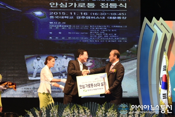 총 20억원의 사업비를 들여 지난 7월 중순 경북 영덕에 가로등(69개)을 설치 완료했으며 9월 중순에는 전북 고창군에 안심가로등(48개)을 완공한데 이어 경주지역에 태양광 LED가로등 66개를 설치 완료하고 이날 점등식을 갖게 된 것이다. 한수원은 오는 12월까지 부산(36개)과 서울(25개)에도 안심가로등을 완공할 예정이다.