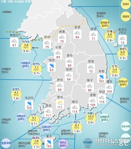 | 오늘(19일)의 기상도.(사진출처=기상청) |