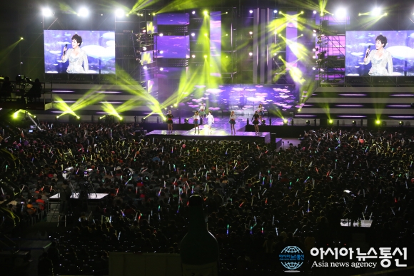 18일 창원스포츠파크 내 창원경륜경기장에서 열린 ‘좋은날 굿데이 콘서트’ 창원 공연에는 DJ∙DOC, 에일리, 제시, 소나무, 금잔디, 신유, 김용임, 진성 등 전 연령층이 함께할 수 있는 국내 정상급 가수가 출연, 3000여명의 시민들과 함께하는 흥겨운 콘서트로 대성황을 이뤘다.