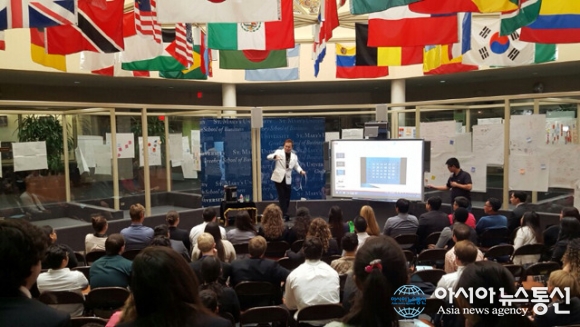 성 메리스 대학의 경영학과 전 학생들과 교수들이 참석한 이번 강연엔 '마술과 트리즈의 융합' 성경과 마술 스토리의 융합과 창의적인 마술과 트리즈의 문제해결을 마술로 풀어내는 과정을 70분간 펼쳐냈다.