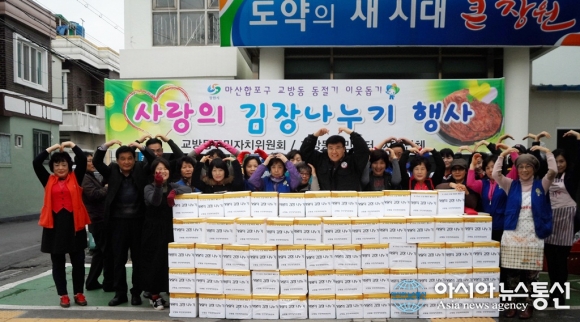 경남 창원시 마산합포구 교방동(동장 윤진구)은 19일 주민센터에서 ‘사랑의 김장 나눔’ 행사를 가졌다고 밝혔다.