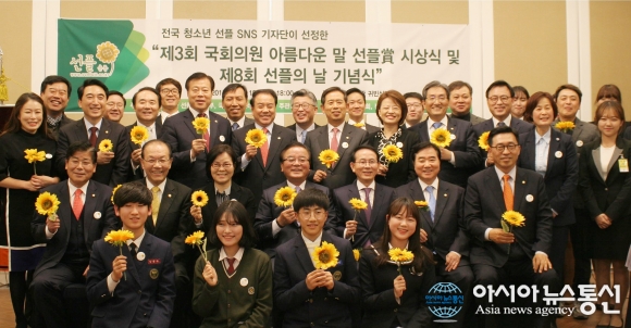 전국 청소년 선플SNS 기자단은 고등학생 및 대학생 395명으로 구성돼 올 9월부터 10월까지 2개월간 지난 1년간 국회 회의록 시스템을 분석해 아름다운 언어 사용을 실천하는 여야 국회의원 각 15명씩 선발하고 모니터에 참여한 청소년들이 직접 수상 국회의원에게 상패를 전달했다.