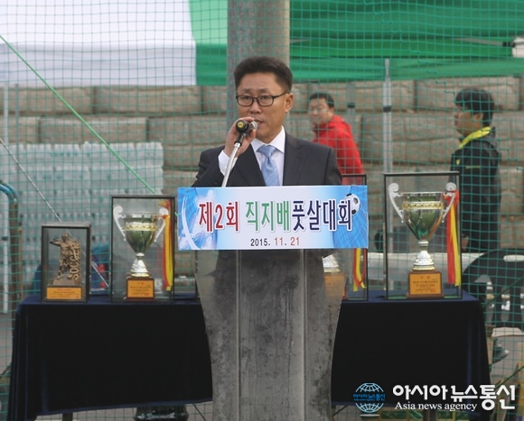| 21일 충북 청주시 서원구 남이면 가좌리에 위치한 청주풋볼센터에서 제2회 직지배풋살대회가 열린 가운데 김경선 아시아뉴스통신충북본부장이 대회사를 하고 있다./아시아뉴스통신=김지수 기자 |