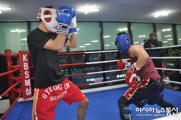 | 20일 오후 8시 인천 남동구 구월1동 아시아드선수촌아파트내 드림프라자 5층 "남동진아복싱체육관" 개관식개관식에서 오픈기념 시범경기가 열리고 있다./아시아뉴스통신=김태일, 이명기 기자 |