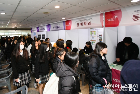 | 23일 대구대에서 열린 캠퍼스 1일 체험 행사에 마련된 각 학과별 홍보부스에 학생들이 북적이고 있다.(사진제공=대구대) |