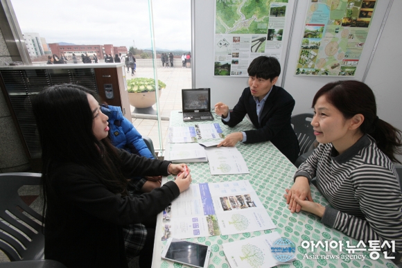 | 23일 대구대에서 열린 캠퍼스 1일 체험 행사에 참가한 한 학생이 입학 상담을 받고 있다.(사진제공=대구대) |