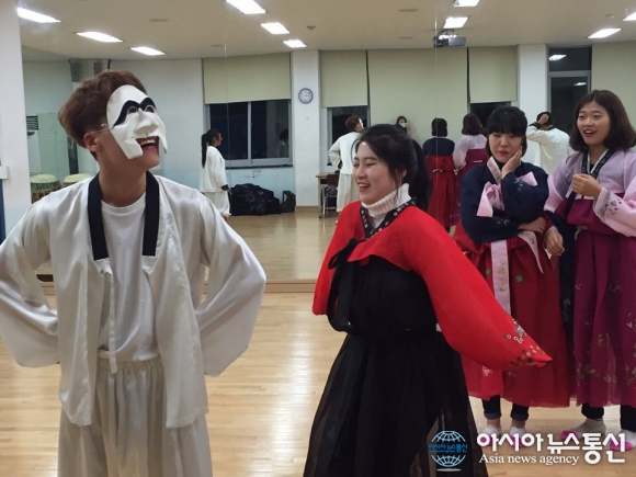 | 연극영화과가 풍자연희극 공연을 연습하고 있는 모습.(사진제공=대경대) |