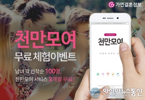 결혼정보회사 가연은 모바일 결혼정보서비스 ‘천만모여’를 무료로 이용할 200인의 체험단을 모집한다고 24일 밝혔다.