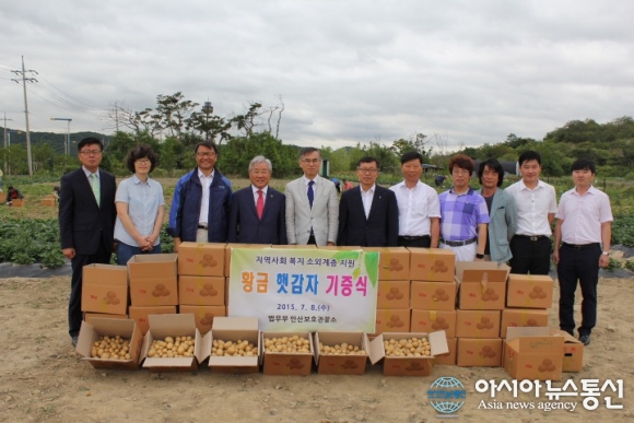 | 지난 7월 8일 안산보호관찰소는 첫 햇감자 337상자(10kg)를 수확했다.(사진제공=안산보호관찰소) |