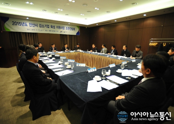 이날 간담회는 제종길 안산시장과 강소기업 육성사업 수행기관인 박영환 한국생산기술연구원 연구소장 등 연구수행 기관장과 강소기업 참여업체 15개 대표가 참석한 가운데 금년도 강소기업 육성사업 성과와 오는 2016년도 사업계획을 청취하고 참여한 기업에 대한 애로사항을 청취하는 의미 있는 시간을 가졌다.