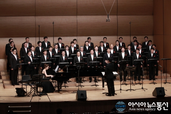 | 앞선 연주회에서 소름돋는 화성과 드라마로 관객을 매료시키고 있는 동성 TEEN OB 남성합창단의 공연 사진이다. /아시아뉴스통신=배준철 기자 |