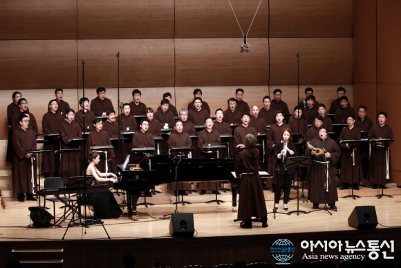 | 지난 2013년에 열렸던 제9회 연주회에서 동성 TEEN OB 남성합창단 단원들이 수사복을 입고 유명 성가곡들로 관객들을 감동시키고 있다. /아시아뉴스통신=배준철 기자 |