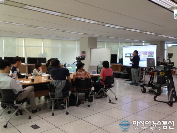 | UHD 제작관련 협의 및 교육 진행 중 김동욱 PD(맨 오른쪽)의 모습.(사진제공=UMAX) |