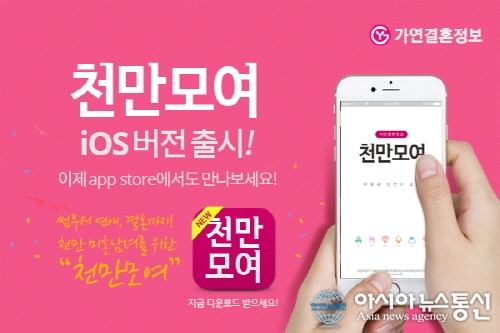 결혼정보회사 가연(대표이사 김영주)은 모바일 결혼정보서비스 ‘천만모여’의 iOS 버전을 출시했다고 4일 밝혔다.