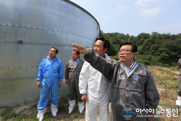 | 지난 6월 23일 이동필 농림축산식품부 장관이 세종시 부강면 소재, 충광농원을 방문하여 구제역 및 AI 방역 마무리를 위해 추진중인 가축방역실태 특별점검 및 매몰지 사후관리 실태를 시찰하고 있다.(사진출처=농림수산식품부) |