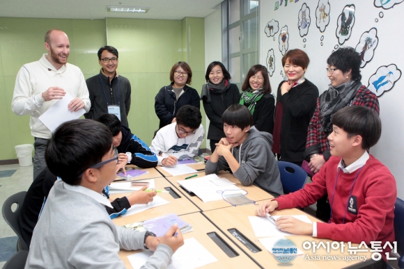 | 최근 달성군 현풍중학교 2학년 학생들이 대구경북영어마을에서 토론식 심화영어학습에 참가해 미래 진로에 대해 토론하고 있다.(사진제공=대구경북영어마을) |