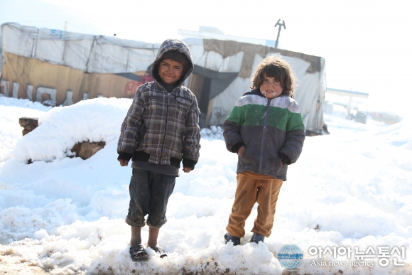| 혹독한 추위를 견뎌야만 하는 시리아 난민촌 어린이 모습.(사진제공=월드비전) |