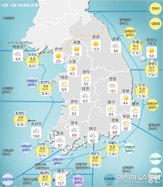 | 오늘(13일)의 기상도.(사진출처=기상청) |