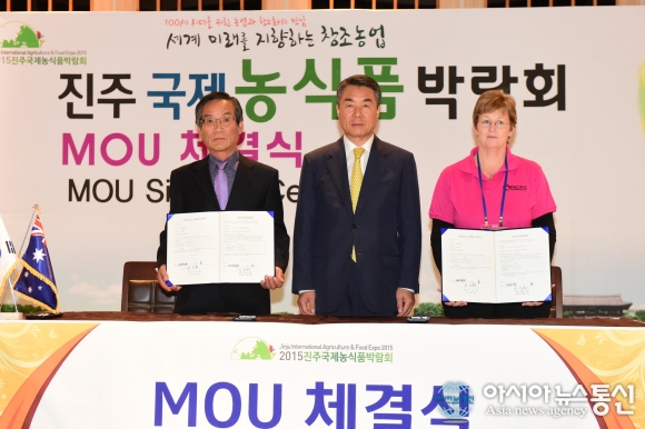 2015 진주국제농식품박람회 수출상담 MOU체결 모습./아시아뉴스통신DB