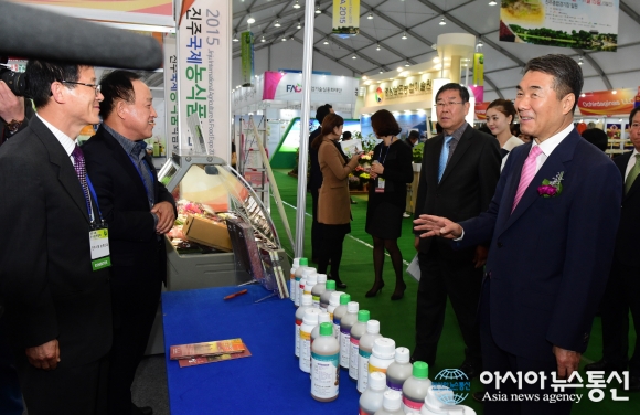 ‘2015 진주국제농식품박람회’에서 해외관을 둘러보는 이창희 진주시장./아시아뉴스통신DB
