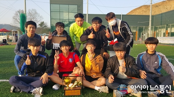 | 제2회 충북 청주시연합회장배 생활체육풋살대회에서 진천 농다리 클럽이 고등부 우승을 차지했다./아시아뉴스통신=김지수 기자 |