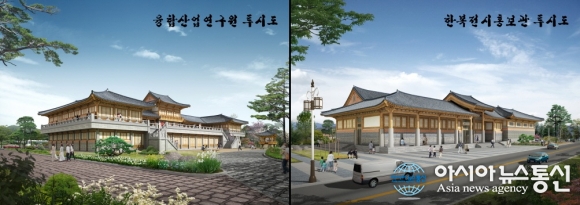 | 융합산업 연구원 투시도(사진왼쪽)한복전시 홍보관 투시도.(사진제공=경북도청) |