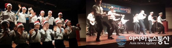 | 12일 경남지방경찰청 기동3중대가 자식들을 의경으로 보내 놓은 부모님들 초청, ‘2015년 한마음 페스티벌’이 열리고 있는 가운데 의경들의 공연 모습.(사진제공=경남경찰청) |