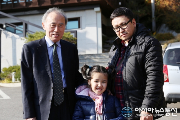 | 지난달 12일 나사렛국제병원 이강일 원장(왼쪽)이 나눔의료사업을 통해 치료를 받고 있는 카자흐스탄 엘다나(가운데)와 인천시내 관광을 하고 있다.(사진제공=나사렛국제병원) |