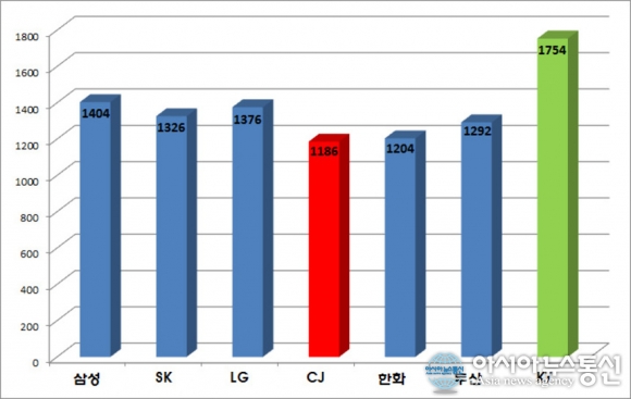 반면 CJ는 1186점을 받아 그룹사 가운데 최하위를 기록했다.