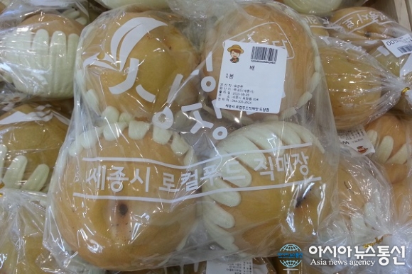 | 세종시가 내년부터 유치원, 동 지역 고등학교에 농산물 구입비를 지원하던 것을 로컬푸드 현물을 공급하는 방식으로 전환한다. 사진은 로컬푸드 직매장에서 취급하는 조치원배./아시아뉴스통신=홍근진 기자 |