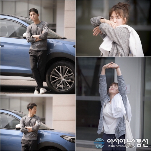 25일 오후 10시에 방송되는 KBS2 수목드라마 '태양의 후예(극본 김은숙 김원석, 연출 이응복 백상훈)'는 2회 방송에 앞서 그녀를 만나기 5초 전’이란 제목의 스틸컷을 공개했다. 누군가를 기다리는 듯한 유시진(송중기 분)과 누군가를 보고 놀란 듯한 강모연(송혜교 분)이다.