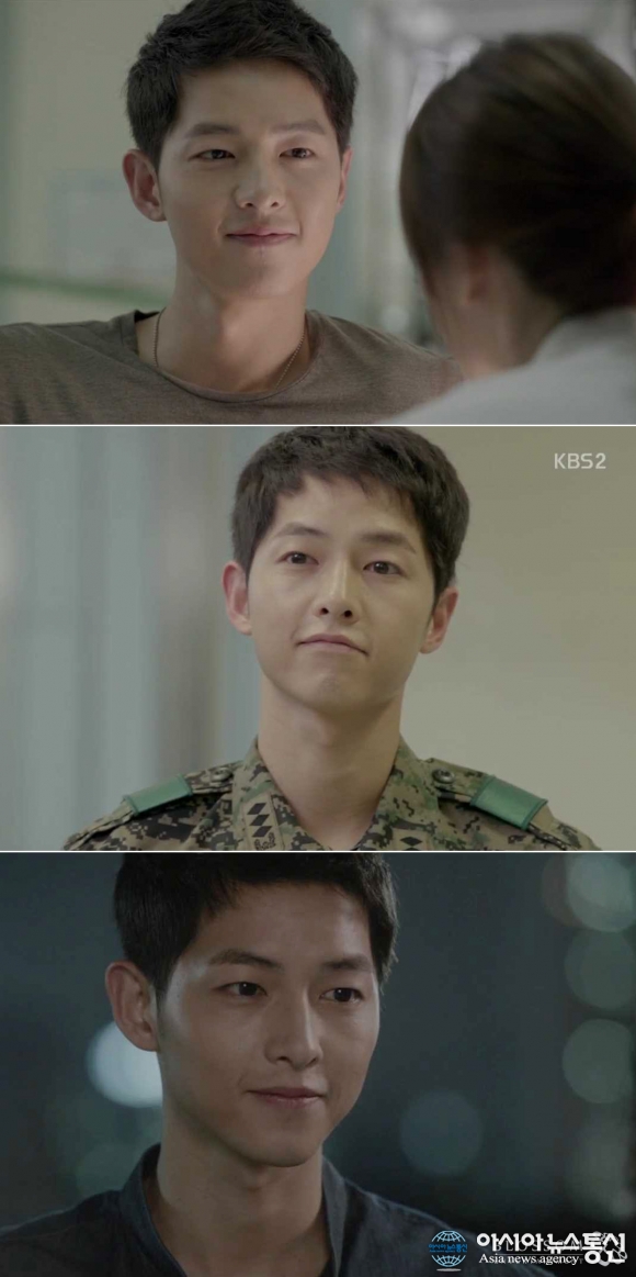 처음 만난 순간부터 의사역인 송혜교에게 호감을 숨기지 않았던 송중기는 아프가니스탄으로 떠나는 헬기를 타기 직전 송혜교에게 데이트를 신청하는 장면으로 안방극장을 또한번 '심쿵'하게 했다.
