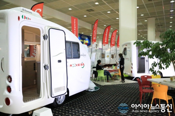 | 2016 서울국제캠핑카쇼에서 관람객들에게 선보이는 캐러반./아시아뉴스통신=이석호 기자 |