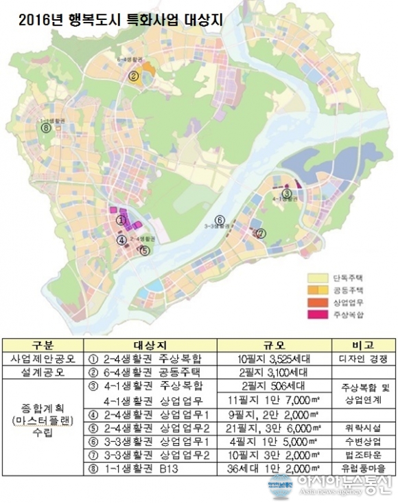 모집 대상사업은 6-4생활권 공동주택 설계공모, 2-4생활권 주상복합 사업제안공모, 2-4·3-3생활권 상업용지 건축디자인 향상방안 수립, 1-1생활권 유럽풍 단독주택단지 계획 수립 등 8개이다.?