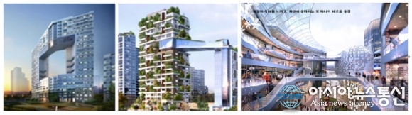 | 행복청이 세종시 신도시 특화사업 전문가를 공모한다. 사진은 고시 특화사업 예시도. 좌로부터 2-1생활권 개선문 공동주택, 4-1생활권 생태디자인 특화동, 2-4생활권 어반아트리움.(자료제공=행복도시건설청) |