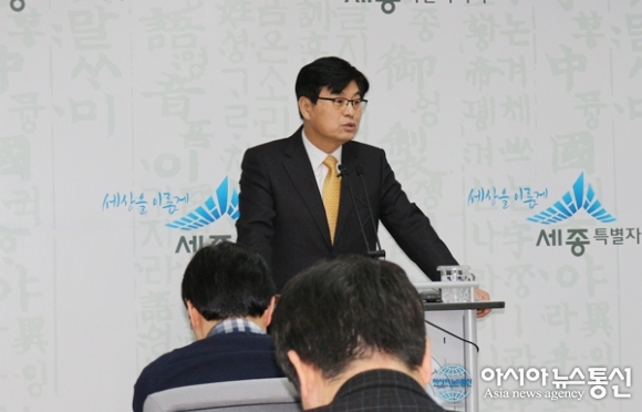 | 3일 오전 시청 브리핑룸에서 기자회견을 하고 있는 이춘희 세종시장./아시아뉴스통신=홍근진 기자 |