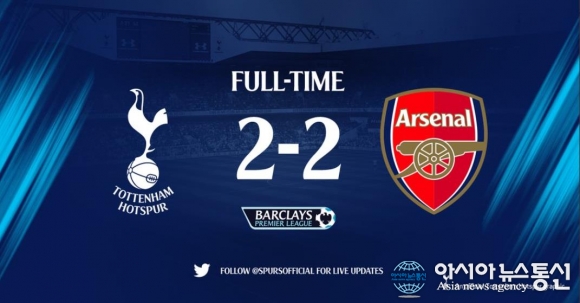토트넘은 5일 오후 9시 45분(한국시간) 영국 런던 화이트하트레인에서 열린 2015-16시즌 잉글리시 프리미어리그 29라운드 홈경기에서 아스널과 2-2 무승부를 기록했다. 손흥민은 후반 37분 교체 투입돼 짧은 시간을 소화하며 공격 포인트를 올리지 못했다.