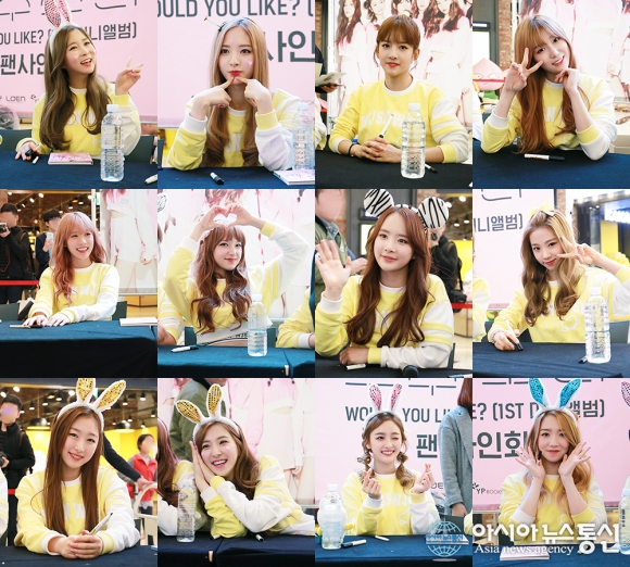 최근 한 온라인 게시판에는 지난 6일 서울 영풍문고 여의도 IFC 몰에서 진행된 우주소녀의 데뷔 후 첫 팬사인회 사진이 게재됐다.‘우주소녀 실물미모 대단’라는 제목의 게시물 속 우주소녀 멤버들은 노랑색의 무대의상을 입은 채 각자 다양한 포즈와 표정을 선보이고 있다. 특히 무보정 사진임에도 하얀 피부와 청순한 미모는 네티즌의 부러움을 사고있다.