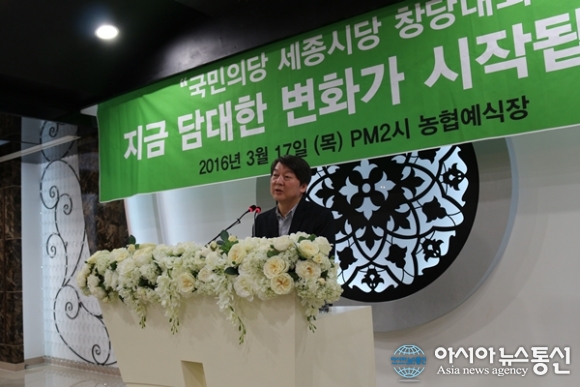 안철수 대표는 17일 오후 2시 세종시 조치원농협에서 열린 국민의당 세종시당 창당대회에서 “양당정치는 반대만을 위한 수렁정치”라며 “미래를 위해 국민의당을 선택해 달라”고 호소했다.