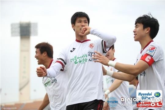 기세가 오른 수원FC는 경기 막판 역전골을 터트리며 경기를 뒤집었다. 후반 44분 오군지미의 왼발 슈팅이 우측 골대를 맞고 나오자 쇄도하던 이승현이 가볍게 밀어넣으며 광주의 골망을 갈랐다. 결국 경기는 수원FC의 2-1 극적인 승리로 마무리됐다. 광주FC의 '패트리어트' 정조국은 3경기 연속골(시즌4호)로 득점 선두에 올랐지만 팀의 패배로 빛이 바랬다.